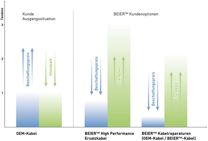 Durch die BEIER™ High Performance Kabelreparatur können je nach Kabelvariante über 65% des Beschaffungspreises